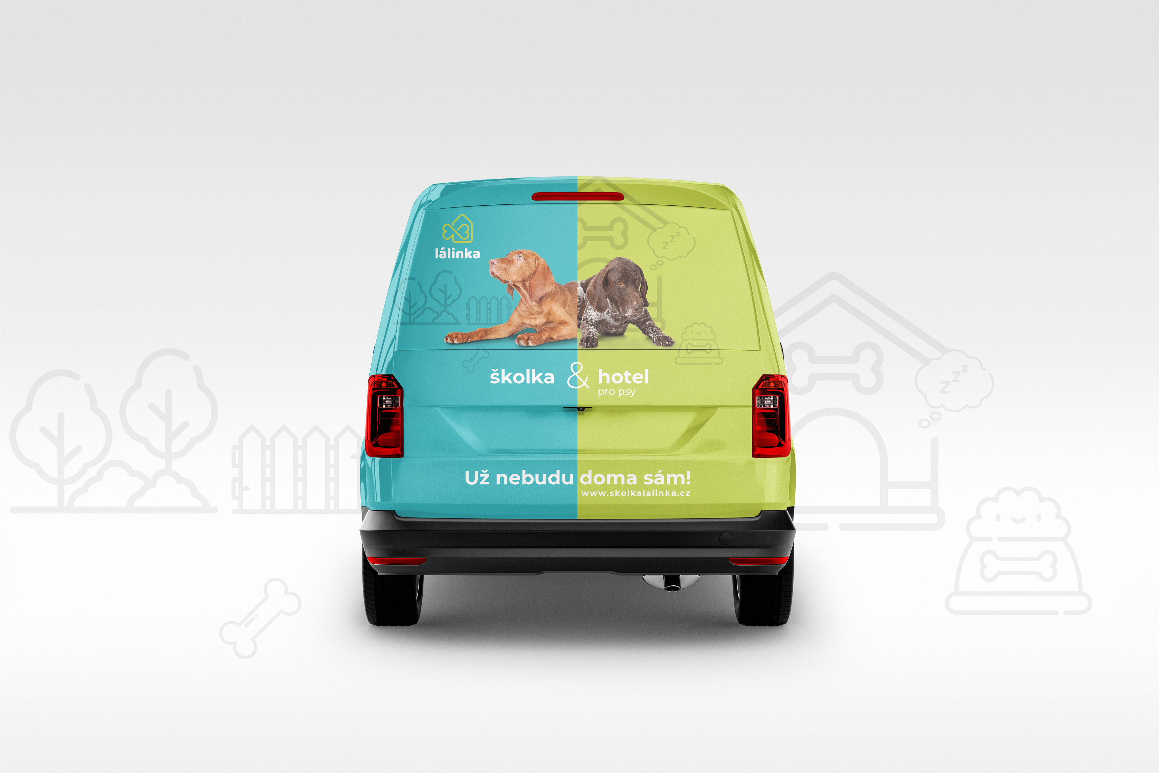 Zpracování celkové korporátní identity pro školku a hotel pro psy včetně polepu vozu.